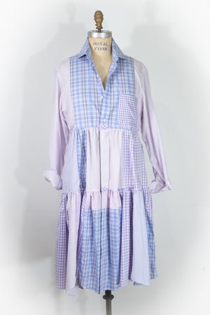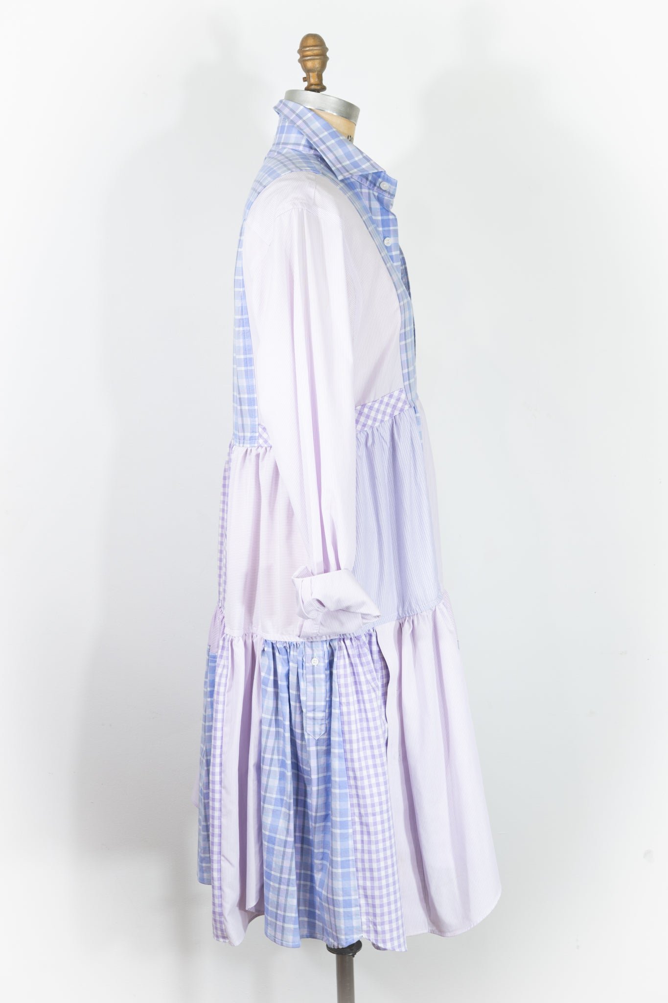 Now, two years later, the Montclair Reconstructed Shirt Dress has officially arrived! Each one-of-a-kind piece is handcrafted, cleverly using the original plackets, cuffs, and buttons as design elements to cut waste and crank up the style. And Johanna organically combines the patterns and stripes in each bespoke garment to command attention with perfect balance.